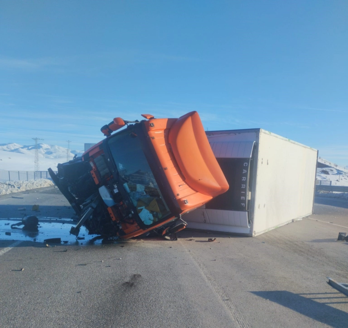Bingöl’ün Karlıova ilçesinde gıda yüklü tırın devrilmesi sonucu meydana gelen kazada, sürücü yaralandı.