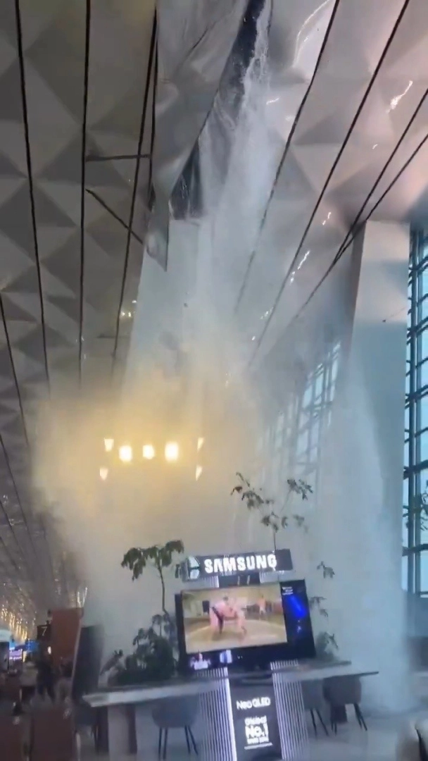 Endonezya’nın başkenti Jakarta’daki Soekarno-Hatta Uluslararası Havalimanı’nda şiddetli yağış ve fırtına nedeniyle yolcu terminalinin çatısının bir bölümü çöktü