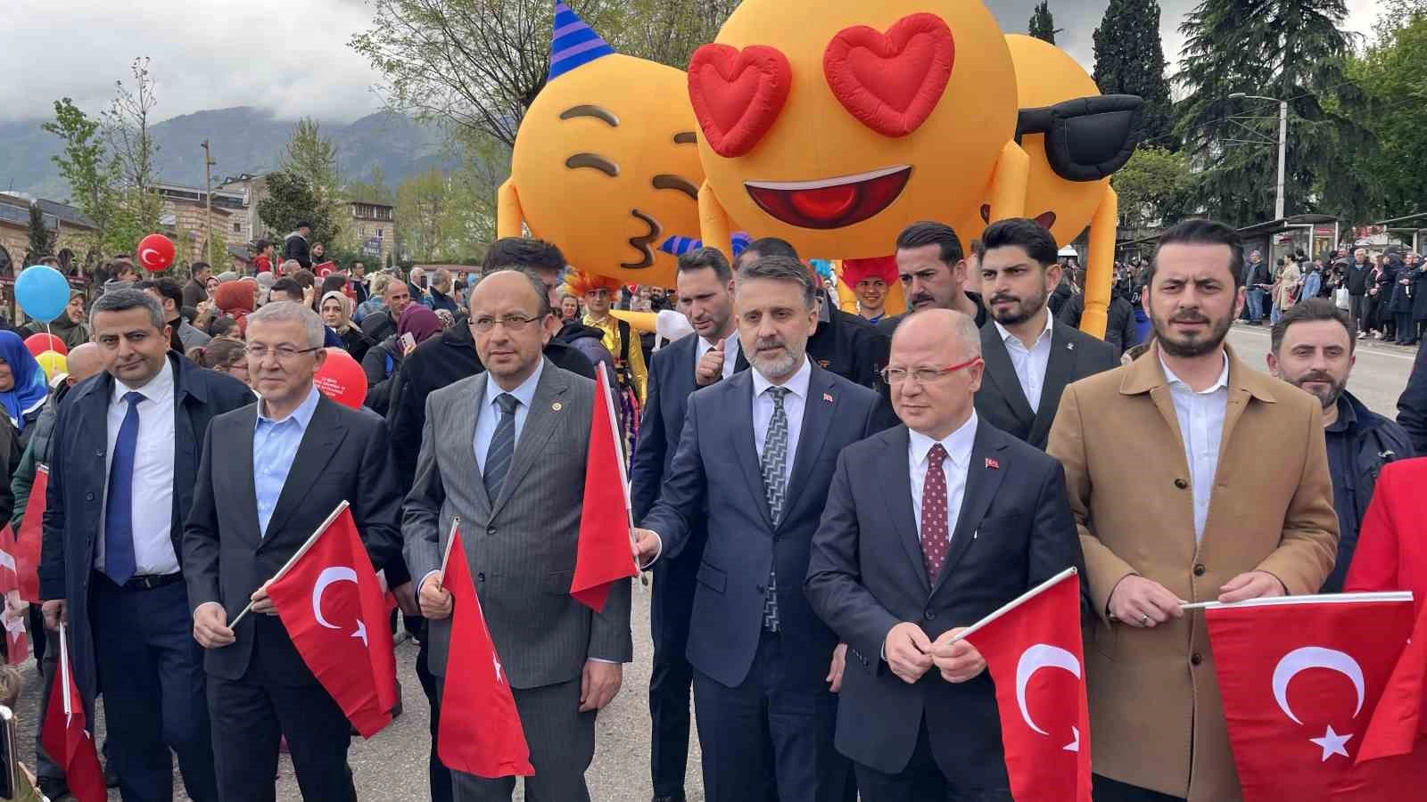 Bursa’da 23 Nisan Ulusal Egemenlik ve Çocuk Bayramı kutlamaları kapsamında kortej yürüyüşüne gencinden yaşlısına yüzlerce kişi katıldı.
