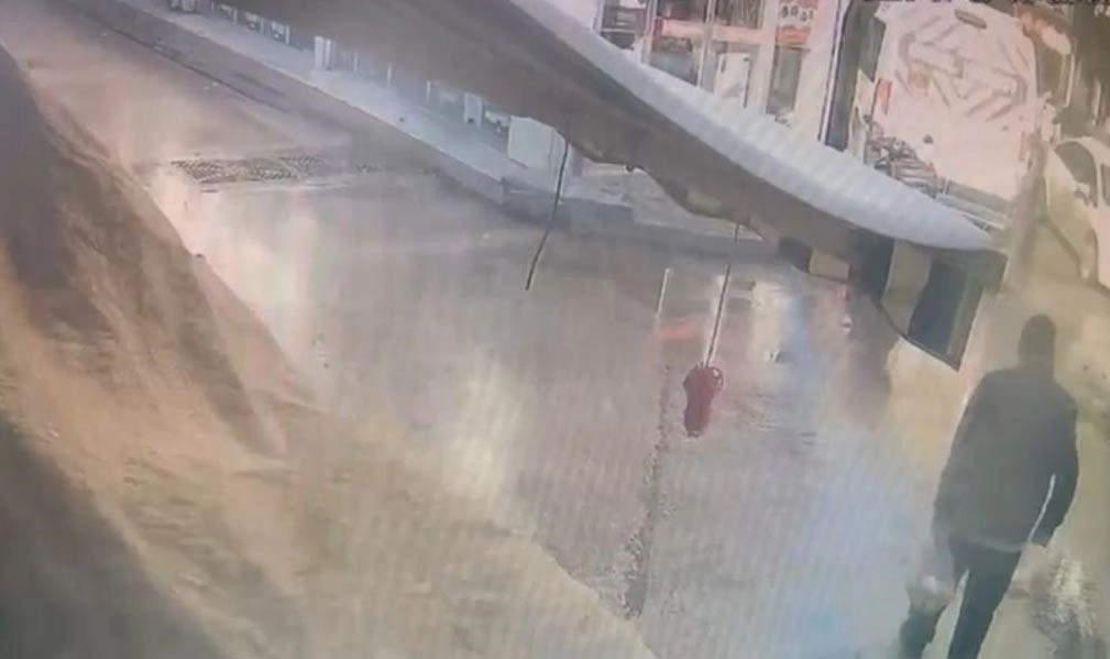 Kaza anı kameraya yansırken, aracın altında kalan adamın ayağı kırıldı.