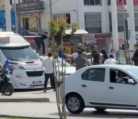 Bursa’da boks ringlerini aratmayan kavga, merkez Osmangazi ilçesi Kent Meydanında kayda alındı. Yol verme tartışması yüzünden yolun ortasında araçlarını park eden sürücüler, yumruk yumruğa kavgaya tutuştu. Yaklaşık 5 saniye için dakikalarca bir birine yumruk sallayan sürücüleri, kimse engel olamadı.