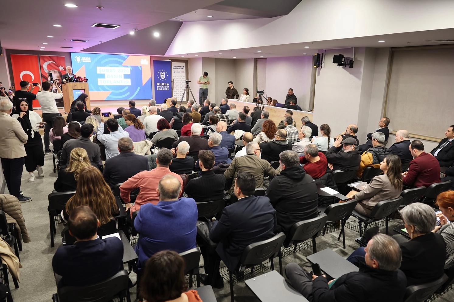 Bursa Büyükşehir Belediye Başkanı Mustafa Bozbey, sosyal belediyecilik anlayışını kentin her alanında hiçbir ayrım gözetmeden devam ettirdiklerini belirterek, “İnsanı merkeze alan, kimseyi geride bırakmayan ve dayanışmayı esas alan hizmet modeliyle Bursalıların yanında olmayı sürdürüyoruz” dedi. Marmara Belediyeler Birliği (MBB) ve Bursa Büyükşehir Belediye Başkanı Mustafa Bozbey, Şubat Ayı Değerlendirme Toplantısı’nda sosyal hizmetlerden sağlık alanındaki desteklere, su faturalarından BUSKİ yatırımlarına, Vakıflar ile yaşanan sıkıntılardan mali duruma kadar birçok konuda önemli açıklamalarda bulundu. Büyükşehir Belediyesi Ana Hizmet Binası’ndaki değerlendirme toplantısına, CHP Bursa İl Başkanı Nihat Yeşiltaş, Büyükşehir Belediyesi genel sekreter yardımcıları, Büyükşehir Belediyesi ve iştiraklerin yöneticileri ile basın mensupları katıldı.” “TÜM SAVAŞLARIN DURDURULMASINI İSTİYORUZ”