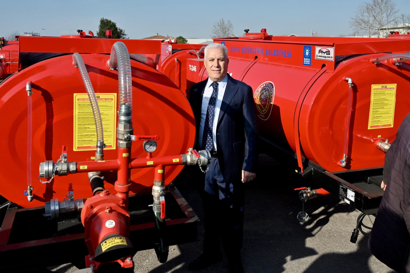 Bursa Büyükşehir Belediyesi, halkın can ve mal güvenliğini artırmak, doğal afetlere karşı daha hazırlıklı olmalarını sağlamak amacıyla ‘Gönüllü İtfaiyecilik’ kapsamında kırsal mahallelere 100 adet traktör arkası yangın tankeri dağıttı. Başkan Mustafa Bozbey, “Bizim yönetim anlayışımızda hiçbir mahallemiz yalnız değildir” dedi.
