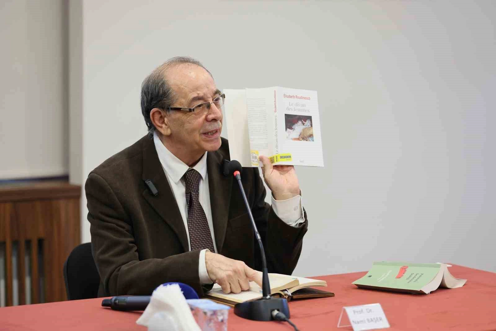 Kültür, Sanat ve Sosyal İşler Dairesi Başkanlığı tarafından Tayyare Kültür Merkezi’nde gerçekleştirilen programa, felsefe meraklıları yoğun ilgi gösterdi. İnsan ve Felsefe’ temalı söyleşinin yürütücülüğünü Prof. Dr. Kadir Çüçen ve Ceren İplikçi üstlendi. Programa konuşmacı olarak katılan Prof. Dr. Nami Başer, ‘İnsanın Temel Sorunları: Etik ve Eros’ başlığında varlığın temel taşlarını felsefi bir bakış açısıyla ele aldı. Etkinliğin sonunda Kültür, Sanat ve Sosyal İşler Dairesi Başkanı Şafak Baba Pala tarafından Prof. Dr. Nami Başer’e hediye verildi.