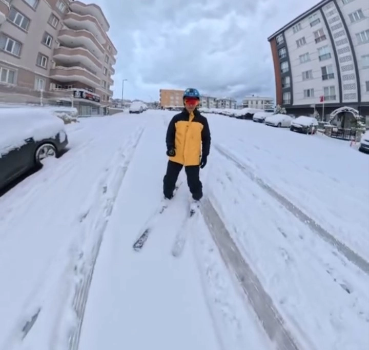 Kayak yaparken kendini kayda da alan vatandaş, karla kaplanan yollarda rahatlıkla ilerlediği anları sosyal medyada paylaştı. Görüntüler kısa sürede ilgi gördü.