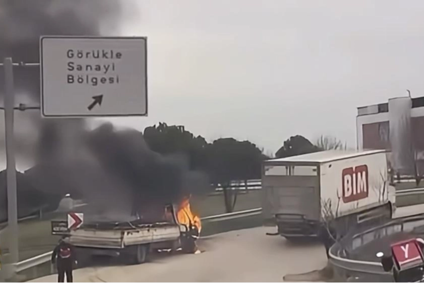 Edinilen bilgilere göre, İzmir Yolu'ndan Görükle dönüş sapağına ilerleyen kamyonet, henüz bilinmeyen bir nedenle aniden alev aldı. Yangını fark eden sürücü, aracı durdurmaya çalışarak kendisini son anda dışarı atmayı başardı. Sürücüsüz şekilde bir süre ilerlemeye devam eden kamyonet, Görükle dönüş sapağında bulunan bariyerlere çarparak durabildi. İhbar üzerine olay yerine sevk edilen itfaiye ekipleri, yangına kısa sürede müdahale ederek söndürme ve soğutma çalışmalarını gerçekleştirdi. Yangında can kaybı ya da yaralanma yaşanmazken, kamyonette büyük çapta maddi hasar meydana geldi ve araç tamamen kullanılamaz hale geldi.