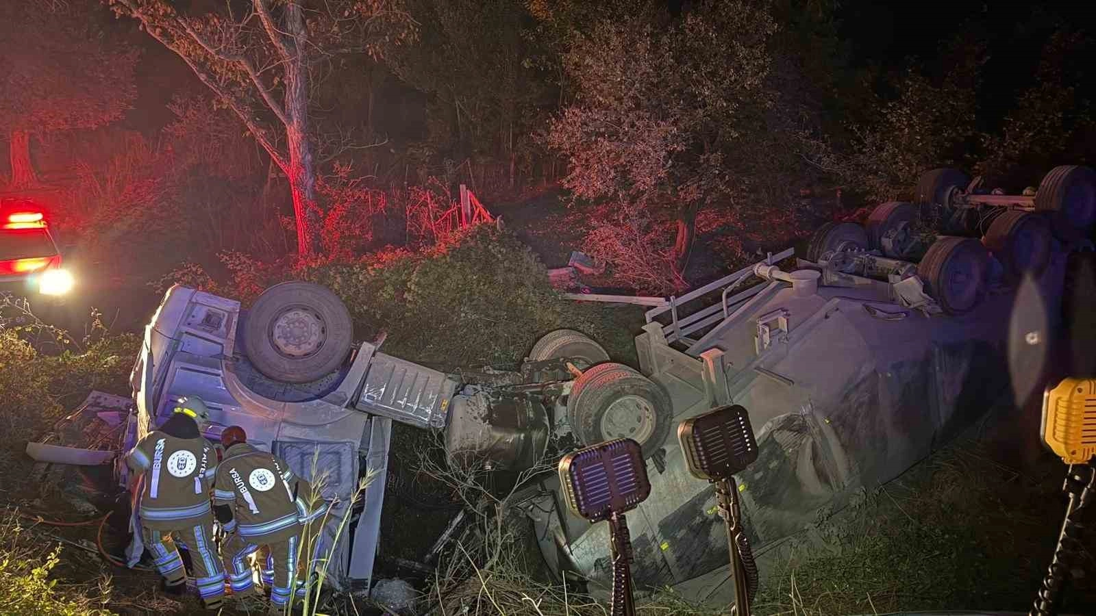 Bursa’da tırın şarampole yuvarlandığı kazada 2 kişi yaralandı