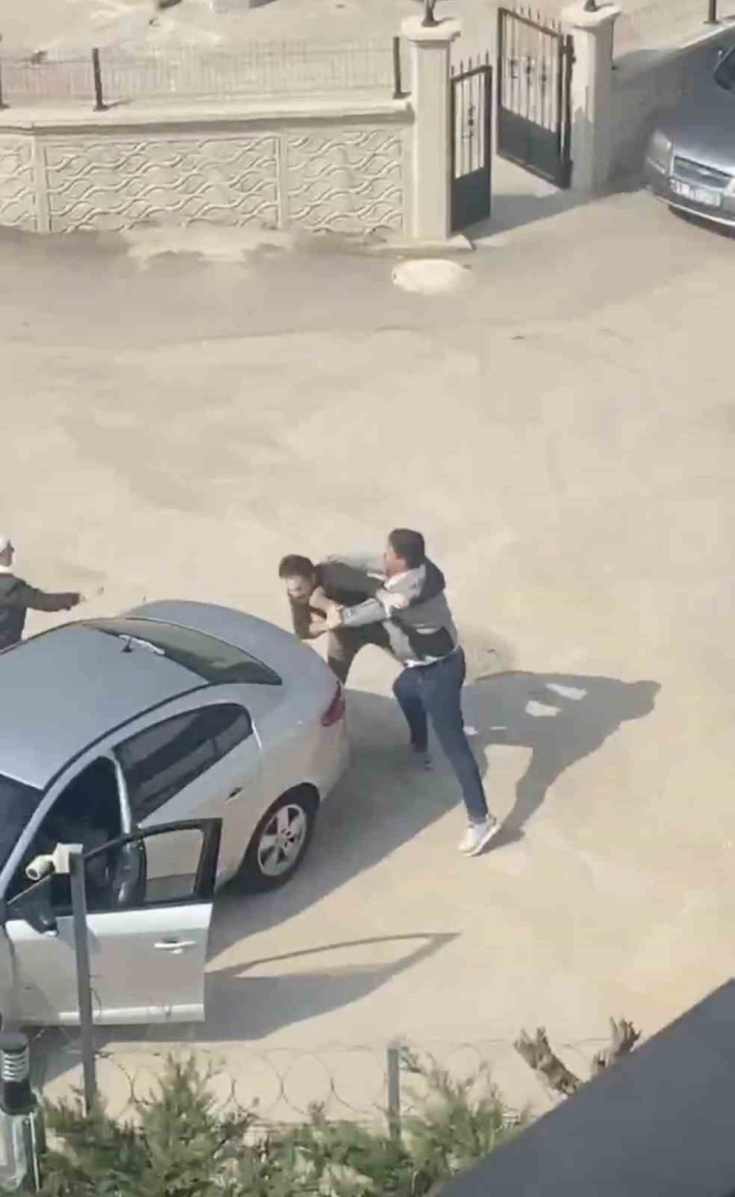 Sopalar, yumruklar ve terliklerin havada uçuştuğu kavga, çevredeki vatandaşların araya girmesiyle güçlükle son buldu. O anlar bir vatandaşın cep telefonu kamerasına saniye saniye yansıdı.