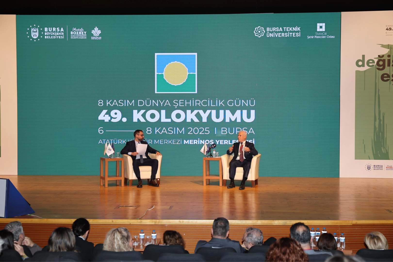 Bursa Büyükşehir Belediyesi, TMMOB Şehir Plancıları Odası, Bursa Teknik Üniversitesi ve Bursa Planlama Ajansı iş birliği ile hazırlanan Dünya Şehircilik Günü 49. Kolokyumu, ‘Değişimin Eşiğinde’ temasıyla Atatürk Kültür Merkezi Merinos Yerleşkesi’nde başladı. 6-8 Kasım tarihleri arasında düzenlenecek olan kolokyumda, şehircilik dünyasının güncel sorunları ve çözüm önerileri masaya yatırılıyor. Üç gün sürecek olan kolokyumda, paneller, oturumlar, akademik bildiriler, forumlar, öğrenci çalıştayları ve sergiler yer alacak.