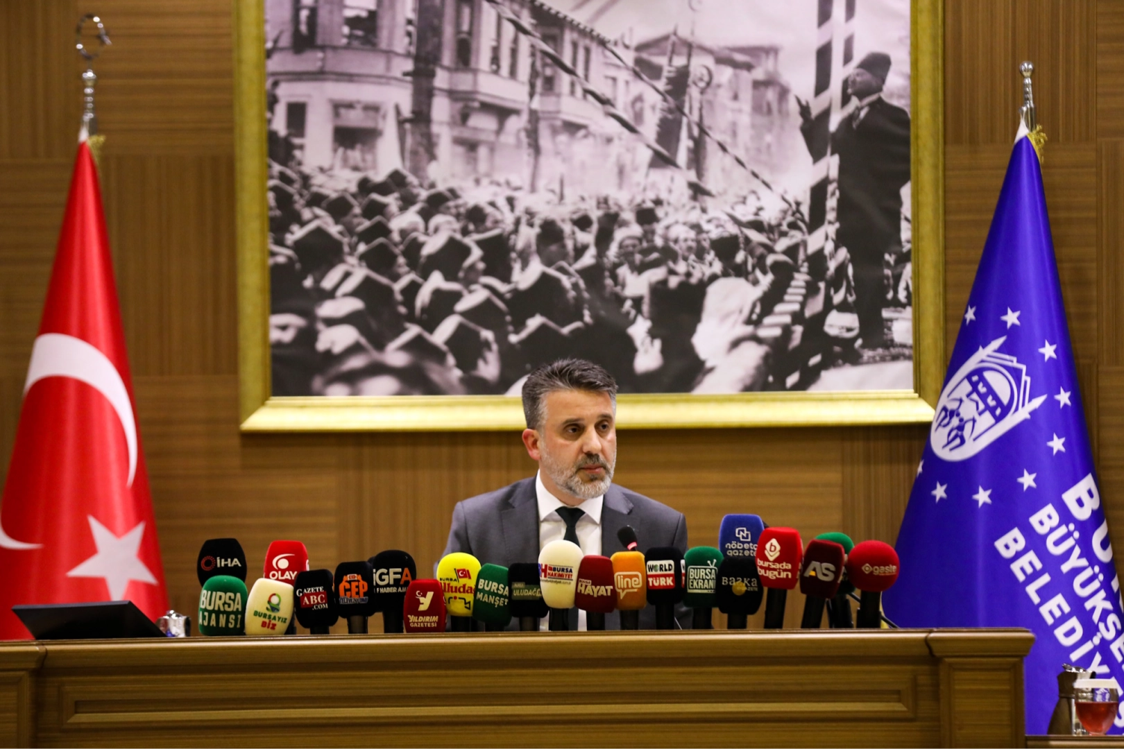 Bursa Büyükşehir Belediyesi’nin de şampiyonluk coşkusunu tüm kente yaymak için Millet Bahçesi ve Hüdavendigar Kent Parkı’nda dev ekranlar kurarak binlerce vatandaşı bir araya getirdiğini hatırlatan Başkan Vekili Biba, “Türk bayrağı ve Bursaspor bayrağı dağıtarak, kentimizin dört bir yanını Bursaspor bayrakları ile donatarak takımımızla tek yürek olduk. Birlik ve beraberliğimizin Bursasporumuzu başarıdan başarıya taşıyacağına ve hak ettiği Süper Lig’e taşıyacağına gönülden inanıyorum. Büyükşehir Belediyesi olarak Bursasporumuza her daim destek olmaya devam edeceğiz. Ayrıca belediye başkanlarımıza da Bursaspor’a verdikleri desteklerden dolayı teşekkür ediyorum” diye konuştu.