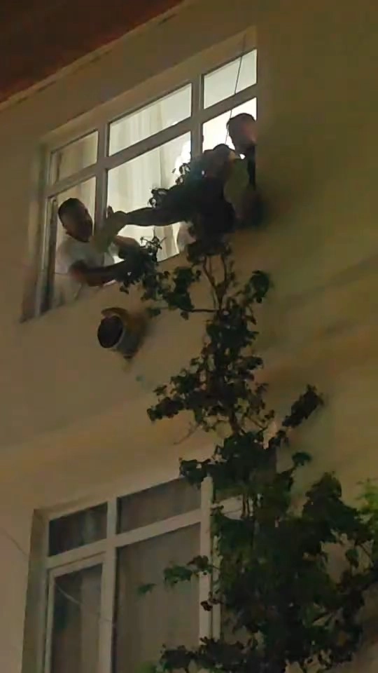 Polis ekipleri uzun süren çabanın ardından şahsı evin içine çekerek kurtardı.