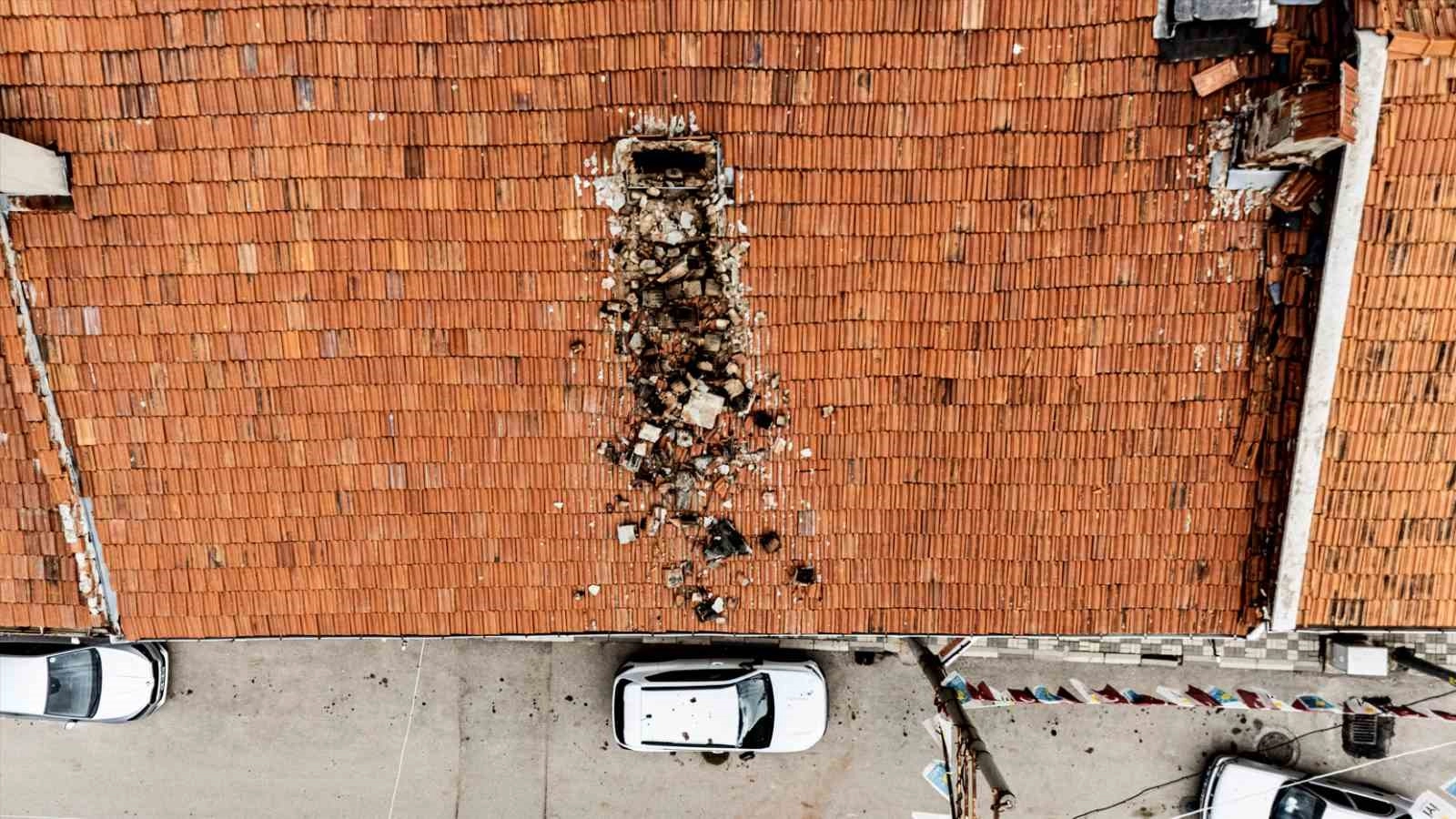 bacadan kopan beton ve tuğla parçalar evin önünde yol üzerinde park halinde bulunan 16 BZP 165 plakalı otomobilin üzerine düştü. Şans eseri yolun boş oluşu facianın önüne geçti. Çevredeki esnafın tedirgin olduğu olay ile ilgili polis ve itfaiye ekipleri tahkikat başlattı.