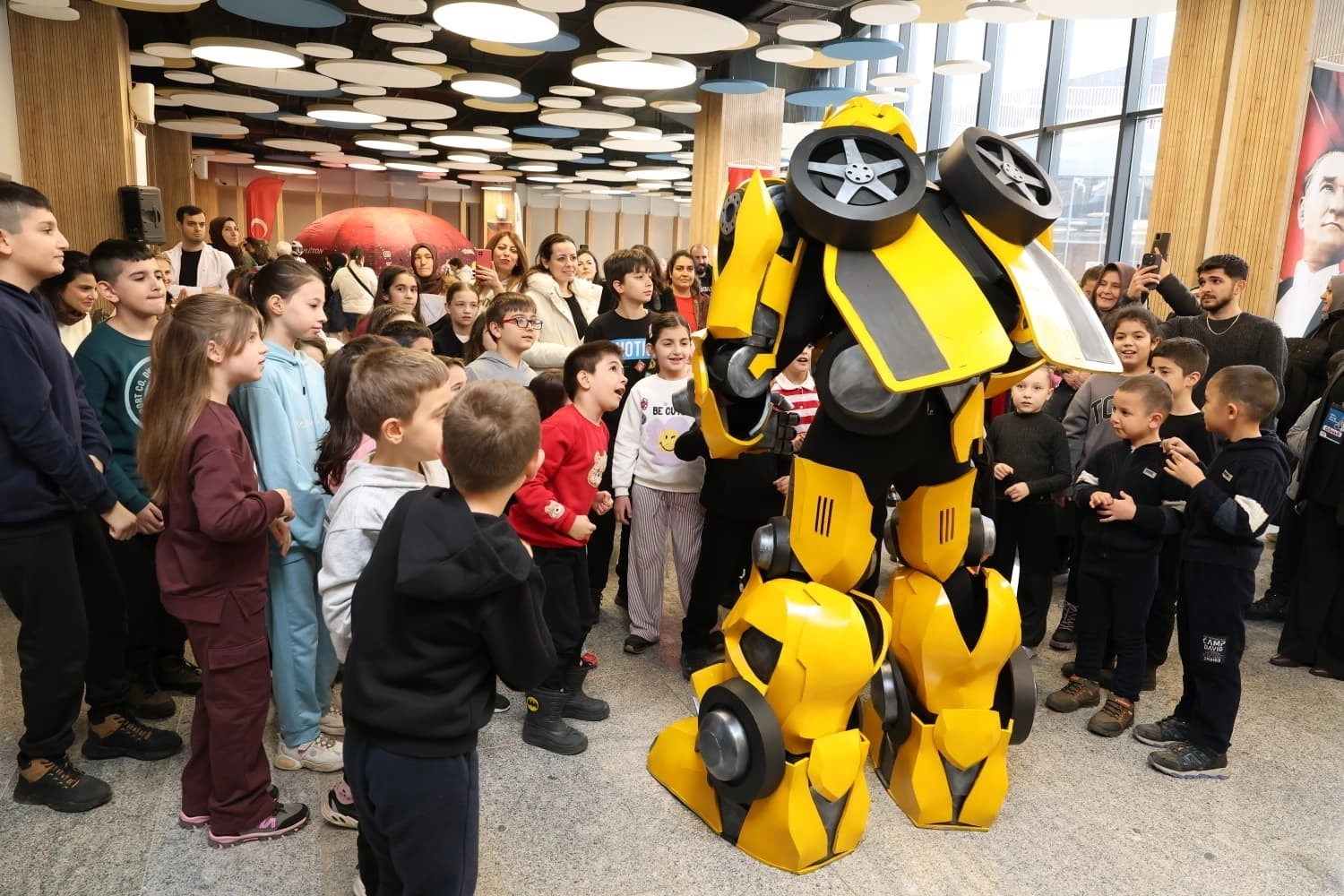 Açılışın ardından atölye alanlarını gezip çocukların çalışmalarını yerinde inceleyen Başkan Erkan Aydın, çocuklarla sohbet etmeyi de ihmal etmedi.