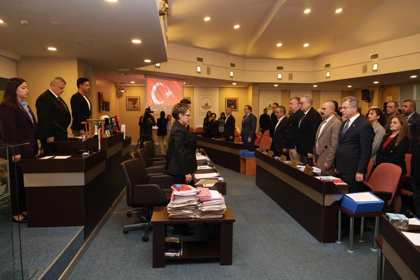 Osmangazi Belediye Meclisi’nin Aralık Ayı Olağan Meclis Toplantısı, Osmangazi Belediye Başkan Vekili Sefa Yılmaz başkanlığında gerçekleştirildi. Osmangazi BelediyeBaşkanı Erkan Aydın’ın şehir dışı programı dolayısıyla yer alamadığı yılın son meclis toplantısı, saygı duruşu ve İstiklal Marşı’nın okunmasıyla başladı.
