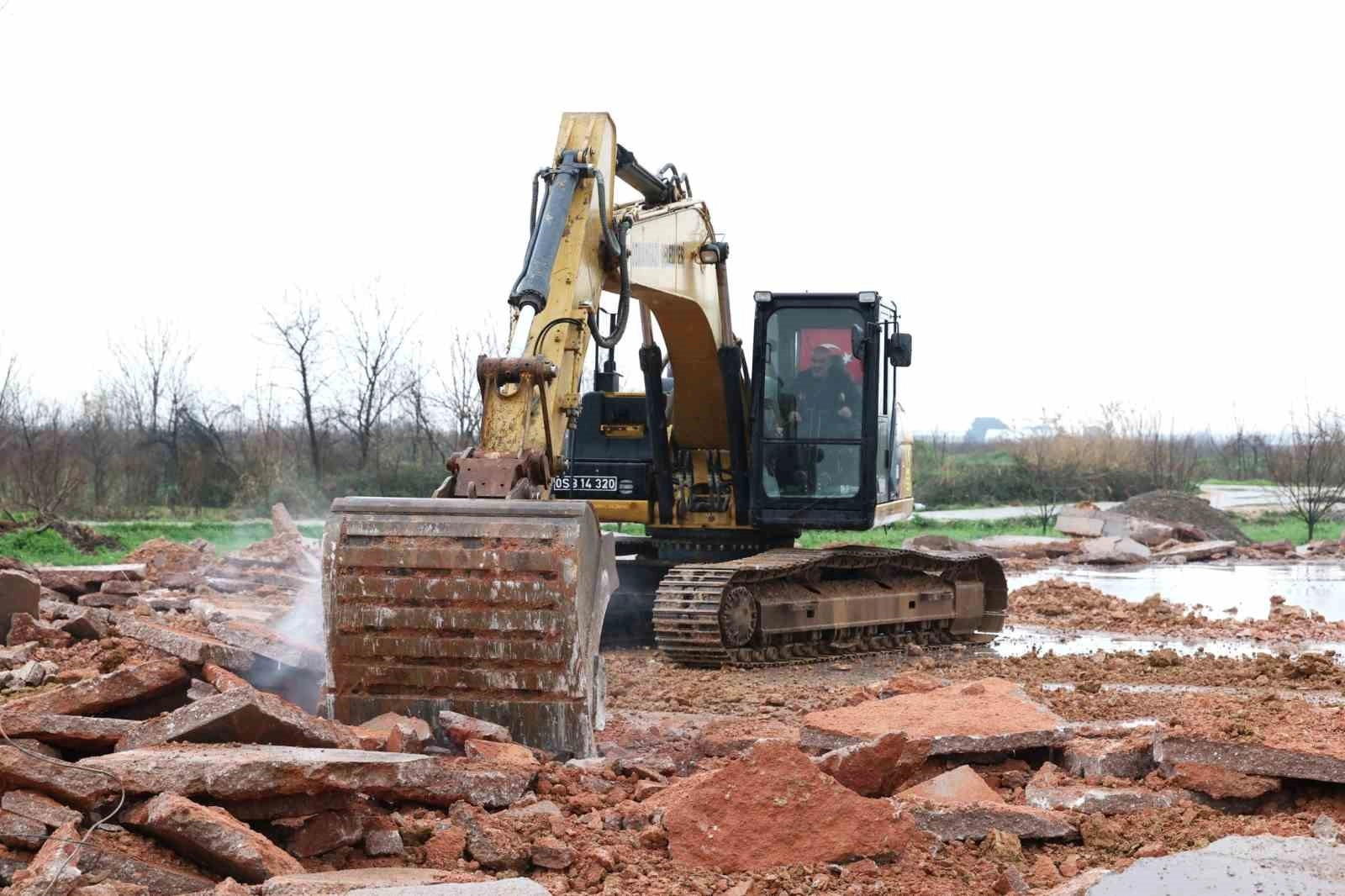 Birinci sınıf tarım arazisine kaçak olarak yapılan depo, inşaat aşamasındayken tespit edilerek yıkıldı.