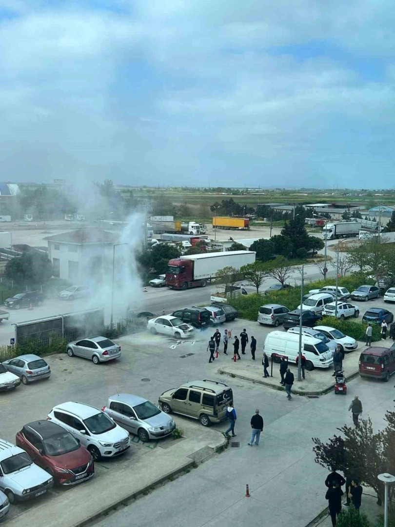 Edinilen bilgiye göre, hastaneye yakınını getiren Turgay Ç. isimli sürücü, 77 AAK 391 plakalı aracını hastane otoparkına park etti. Saat 10.45 sıralarında aracın motor kısmından dumanlar yükselmeye başladı. Kısa sürede alevlere dönüşen yangın, otoparkta paniğe neden oldu.