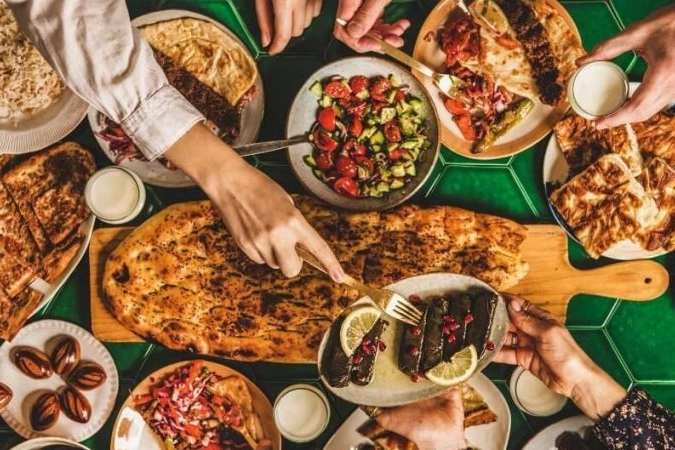 Ramazan ayının, yıl boyunca süregelen beslenme alışkanlıklarını değiştiren ve metabolizmada farklılıklar yaratan bir dönem olduğunu ifade eden Diyetisyen Miray Abaza, “Ramazanın sağlık üzerindeki olumlu etkilerinden faydalanabilmek için ise yeterli ve dengeli beslenmek oldukça önemlidir. Bu dönemde öğünlerimizi sahur, iftar ve ara öğünler olarak planlamak vücudumuzun ihtiyaç duyduğu besinleri almak açısından faydalı olacaktır” dedi. Sahur yemeğinin kan şekerini dengeleyip tokluk süresini uzattığını, susuzluk ile açlık hissini azaltarak sağlıklı bir oruç süreci sağladığını söyleyen Hayat Hastanesi Diyetisyeni Miray Abaza, “Sahurda Çok baharatlı ve tuzlu besin tüketmek susamanıza sebep olacağından önerilmemektedir. Hamur işleri, kızartmalar gibi ağır gıdalar mideyi rahatsız edebilir. Sahurda yeterli su içmek çok önemlidir çünkü gün boyu oruç tutarken vücudun su ihtiyacı artar. Bol su içmek, vücudun susuz kalmasını engeller, enerji seviyenizi yükseltir ve baş ağrısı gibi olumsuz etkilerin önüne geçer” şeklinde konuştu. Açıklamasında iftar yemeklerinin yavaş yenmesi gerektiğini söyleyen Diyetisyen Miray Abaza, “Çorba içildikten sonra 10-15 dakika ara vermek kan şekerinin hızlı bir şekilde yükselmesini önler ve porsiyon kontrolünü kolaylaştırır. Ramazan pidesi, iftar sofralarının vazgeçilmezi olsa da miktarına dikkat edilmelidir. İftardan hemen sonra tatlı yemek önerilmez. Tatlı olarak sütlü tatlılar tüketilmelidir. İftardan yaklaşık 2 saat sonra hafif yürüyüş yapmak sindirimin düzenli çalışmasını sağlar, kan şekeri dengesini korur ve kilo kontrolüne yardımcı olur” dedi. Hayat Hastanesi Diyetisyeni Miray Abaza ramazan ayı beslenmesine ilişkin açıklamasını, “Ramazanda en çok zorlanılan ve unutulan konulardan biri yeterli su içmektir. Günlük olarak su ihtiyacı kişiye, sağlık durumuna, egzersiz yapılıp yapılmamasına göre değişmekle beraber ortalama kilogram başına ortalama 30 ml olarak hesaplanabilir” diyerek tamamladı.