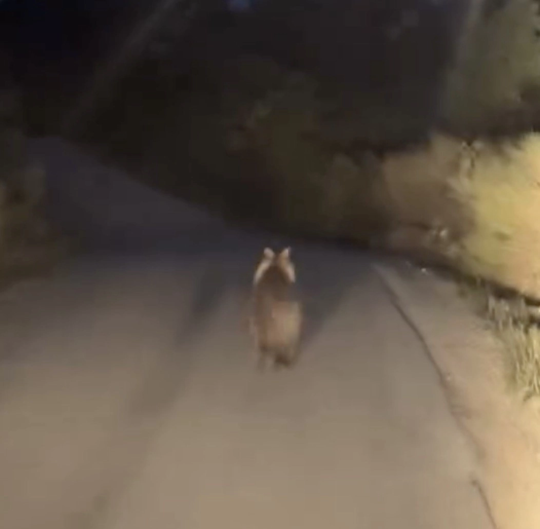 Biga ilçesi Elmalı köyü mevkiinde seyir halinde olan bir aracın önüne ayı çıktı. Araç içindekiler ise o anları cep telefonu kamerası ile yakaladı. Araç ile adeta yarışan ayı bir süre sonra ormana doğru ilerleyerek gözden kayboldu.