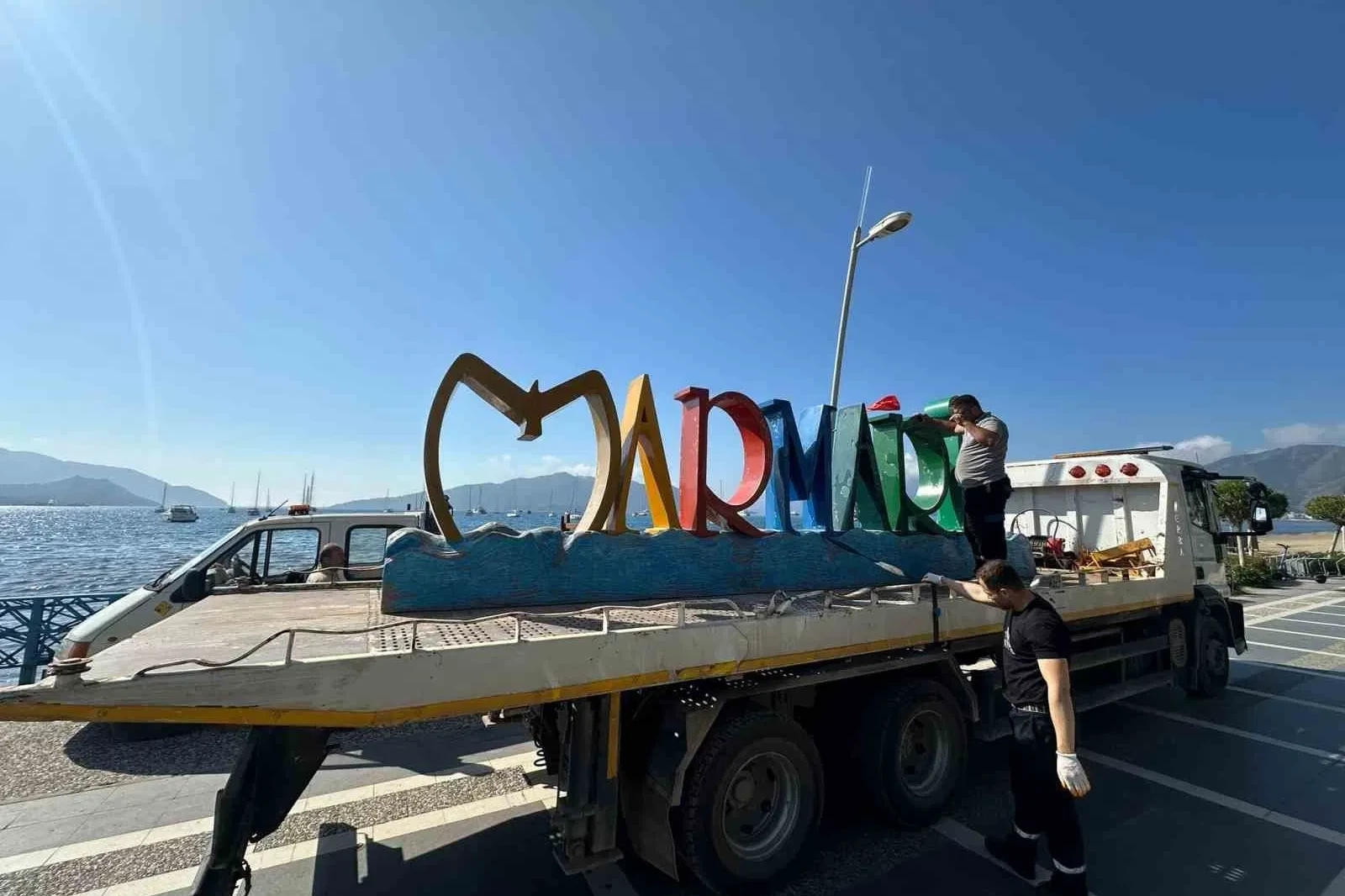 Her yıl binlerce kişinin fotoğraf çektirdiği ‘Marmaris’ yazısı da yaza hazırlanıyor. Marmaris’in en çok ziyaret edilen noktalarından biri olan ve hem ilçe sakinlerinin hem de kente gelen misafirlerin fotoğraf çektirmek için uğrak noktası haline gelen "’Marmaris’ yazısı, sezon hazırlıkları kapsamında yenileniyor. Arka planında Marmaris’in eşsiz manzarasını sunan yazı, Marmaris Belediyesi Makine İkmal Bakım ve Onarım Müdürlüğü ekipleri tarafından bakım ve onarım çalışmaları için bulunduğu alandan alınarak atölyeye kaldırıldı. Kırılan bölümleri onarılacak, gerekli bakım işlemleri gerçekleştirilecek ve yeniden boyanacak olan ‘Marmaris’ yazısı birkaç gün içinde tekrar yerine monte edilerek rengarenk harfleriyle ziyaretçilerini ağırlamaya devam edecek.
