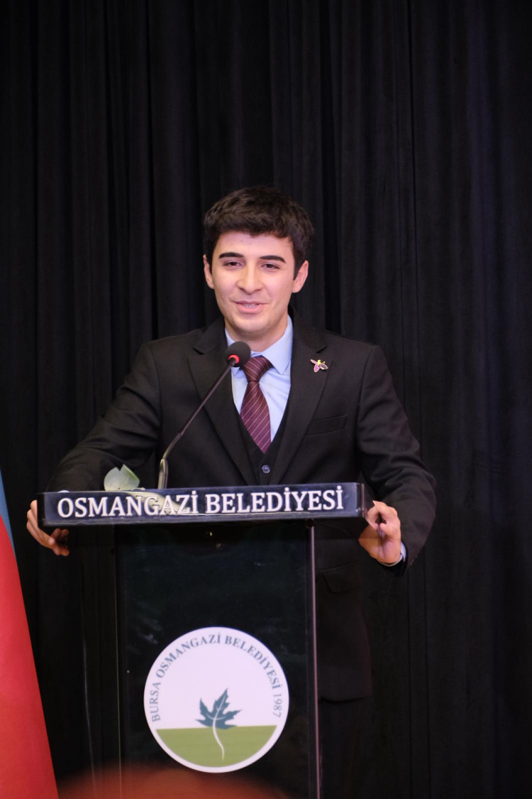 Bursa Uludağ Üniversitesi Azerbaycan Kültür ve Sanat Topluluğu Başkanı Murad Büyükhanov da konuşmasında, Karabağ Zafer’inin gençler için bir gurur ve milli kimlik kaynağı olduğunu dile getirdi. Türk ve Azerbaycan gençlerinin ortak kültür, ortak tarih ve ortak mücadelenin mirasını yaşatma sorumluluğunu taşıdığını bildiren Büyükhanov, zaferin anlamının ancak gençlerin bu bilinçle hareket etmesiyle geleceğe taşınacağını ifade etti.U.Ü. Kültür Sanat Topluluk danışman Hocası Doç. Dr. Mustafa Berkay Aydın konuşmasındazaferin yalnızca asker bir başarı olmadığını, aynı zamanda stratejik, tarih ve kültürel bir kazanım olduğunu belirtti.