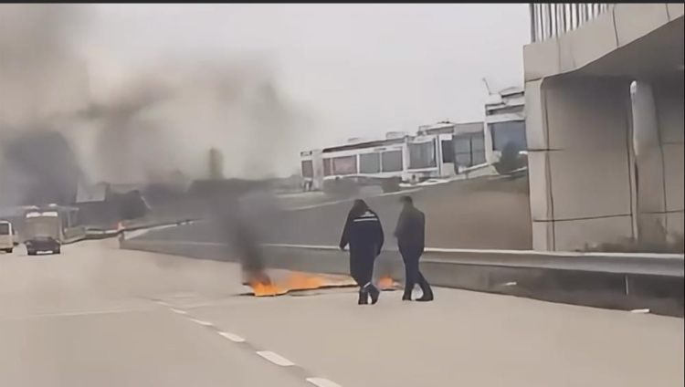 Yangını fark eden sürücü, aracı durdurmaya çalışarak kendisini son anda dışarı atmayı başardı. Sürücüsüz şekilde bir süre ilerlemeye devam eden kamyonet, Görükle dönüş sapağında bulunan bariyerlere çarparak durabildi.