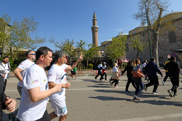 Başkan Erkan Aydın’ın Saltanat Kapı’da verdiği startla başlayan yarışta sporcular, kentin tarihi merkezinden geçen 4 bin 136 metre uzunluğundaki parkur boyunca Bursa’nın simgesel noktaları arasında koştu. Tarihi çarşılar, dar sokaklar ve kentin