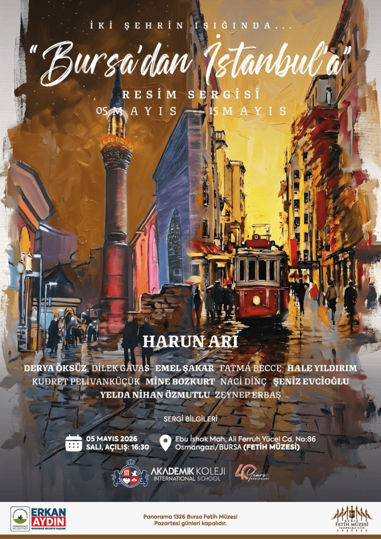 Bursalı Eğitimci, eserleri dünya çapında bilinen Harun Arı ve öğrencilerinin, Yalova-İstanbul-Bursa arasındaki yolculuk hatıralarını renklerle anlattığı sergi, 5–15 Mayıs 2026 tarihleri arasında Fetih Müzesi’nde sanatseverlerle buluşacak.