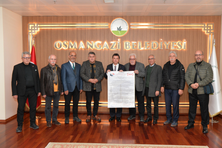 Dernek Başkanı Mustafa Karaman, Erkan Aydın’a kabulü için teşekkür ederken, Bursa’nın çok önemsedikleri kalite şehri olmasının bir dilek olmaktan öte tarihsel bir misyon olduğuna vurgu yaparak Bursa’nın bunu hak ettiğini ifade etti.