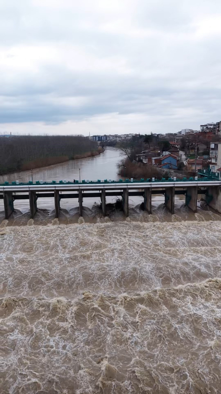 Dronla kaydedilen görüntülerde, çaydaki su seviyesinin normalin üzerine çıktığı ve akış hızının belirgin şekilde arttığı görüldü.
