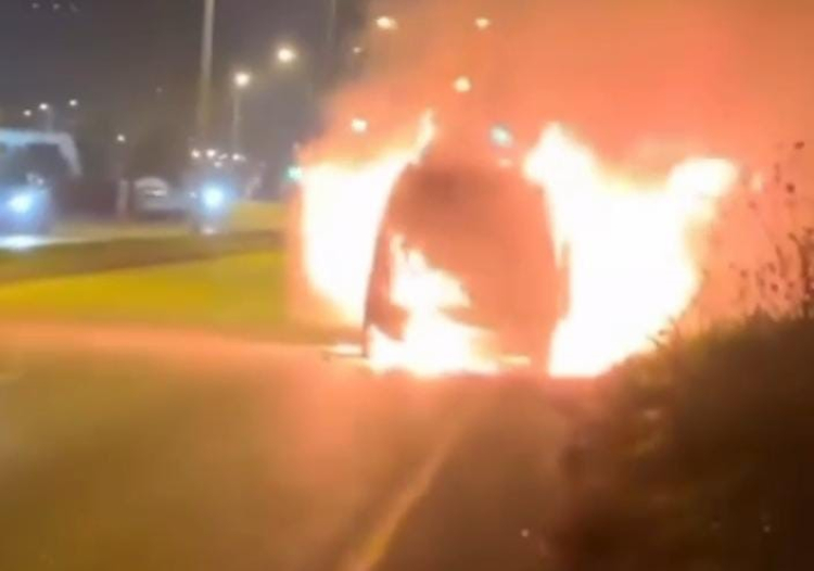 Seyir halindeyken alev alan otomobil kullanılmaz hale geldi